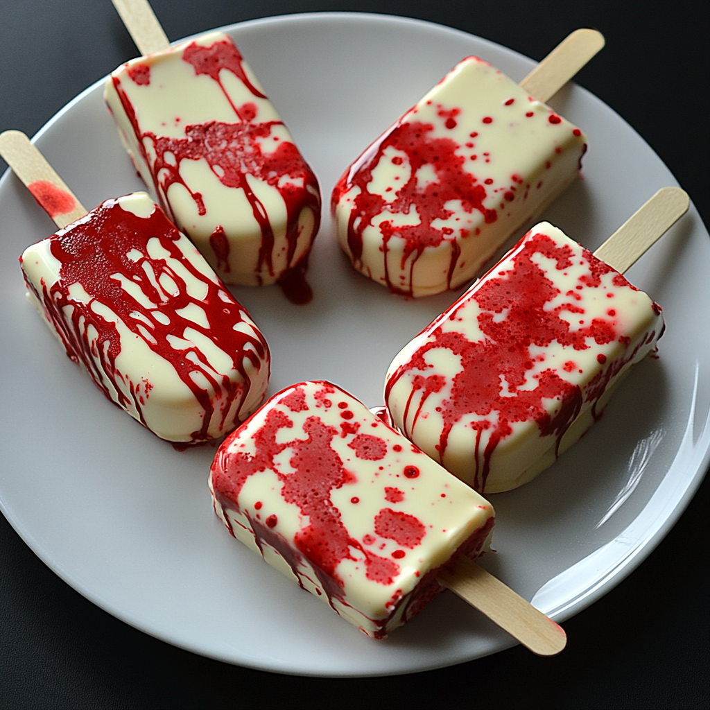 Blood Splatter Cakesicles are the perfect spooky treat for Halloween or any fun gathering. These delicious cakesicles are made with red velvet cake, dipped in creamy white chocolate, and topped with a striking red chocolate blood splatter. They are not only visually appealing but also incredibly tasty, making them a delightful addition to your dessert table. Easy to prepare and perfect for sharing, these cakesicles will thrill your guests at parties and gatherings!